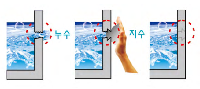 2∼3분 내에 누수 차단됩니다 모래, 시멘트가 필요 없습니다 작업성이 용이합니다 방수 효과가 강도가 우수합니다 습윤면에도 시공이 가능합니다